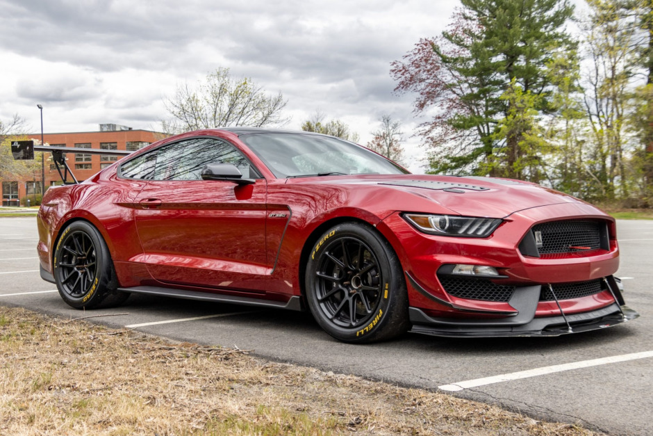 This 2018 Ford Mustang Shelby GT350 was purchased new by the seller from M & M Ford in Epsom, New Hampshire, and subsequently modified for track use. The car is finished in Ruby Red Metallic and is powered by a replacement 5.2-liter V8 paired with a six-speed manual transmission and a limited-slip differential. Modifications include 18″ Forgeline wheels, Ford Performance suspension parts, a four-point roll bar, Cobra racing seats, Schroth six-point harnesses, a custom 3″ exhaust system, and…